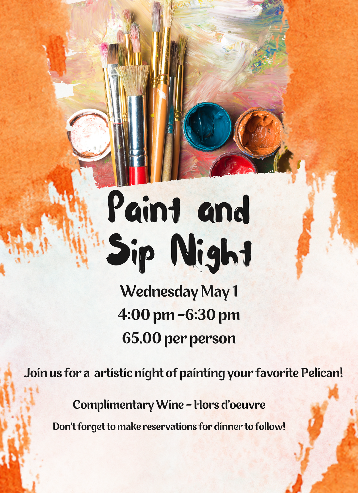 Back to All Events Paint and Sip Night Wednesday, May 1, 2024 4:00 PM 6:30 PM Google Calendar ICS Make reservation here