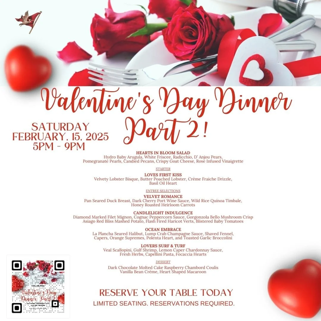 Valentine's Dinner: Night 2 Saturday, February 15, 2025 5:00 PM 9:00 PM Google Calendar ICS Make your reservation here